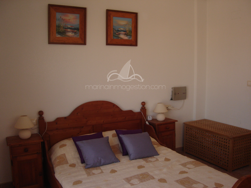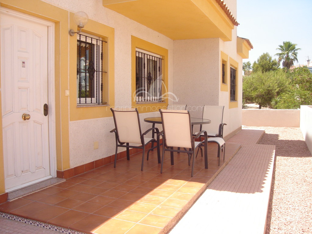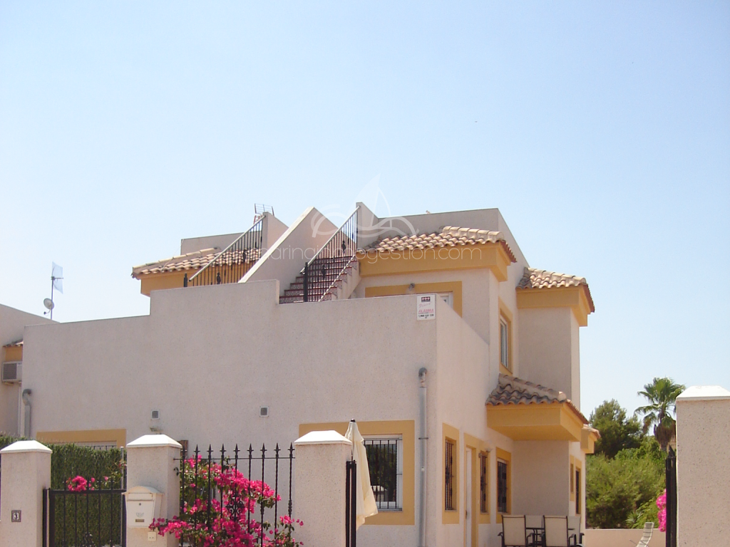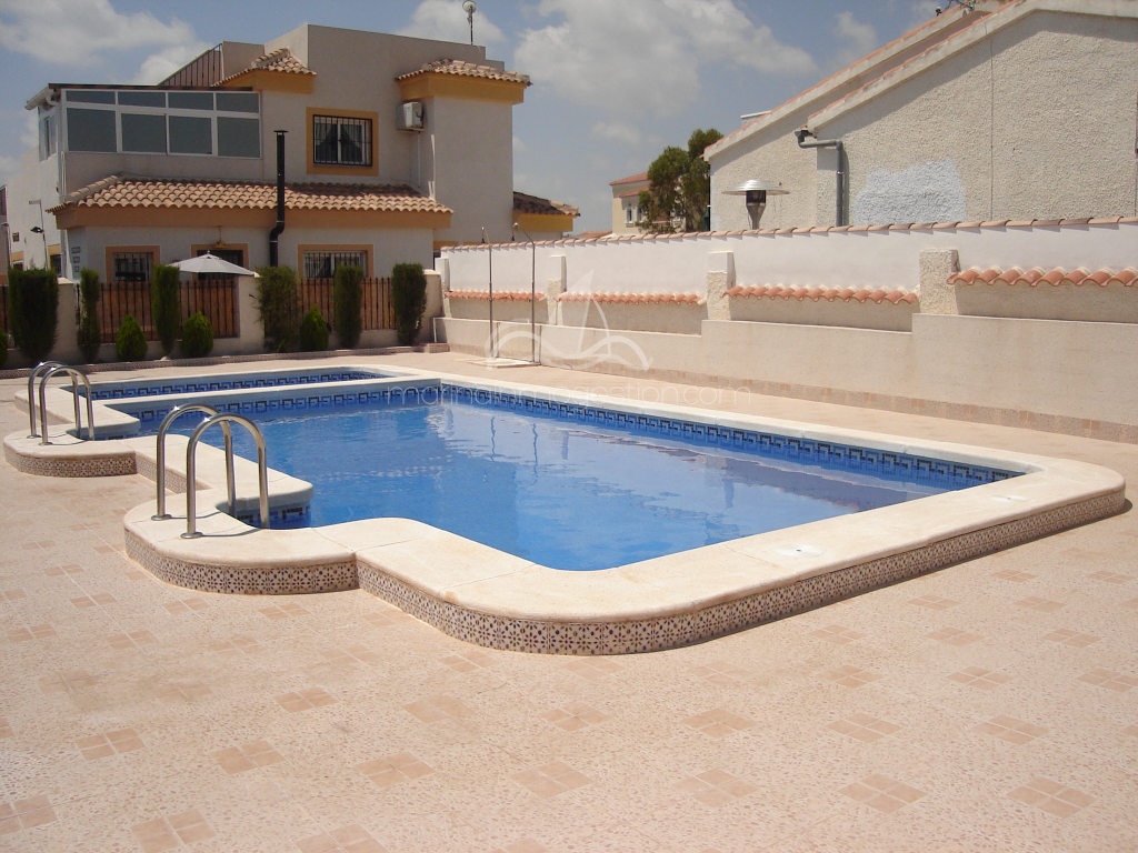 Bonito chalet pareado en residencial con piscina comunitaria. Zona tranquila en urb la marina con todos los servicios. Tiene mobiliario nuevo, aire acondicionado. Ventiladores en techo, solarium. Ideal para pasar unas vacaciones tranquilas y comodas.