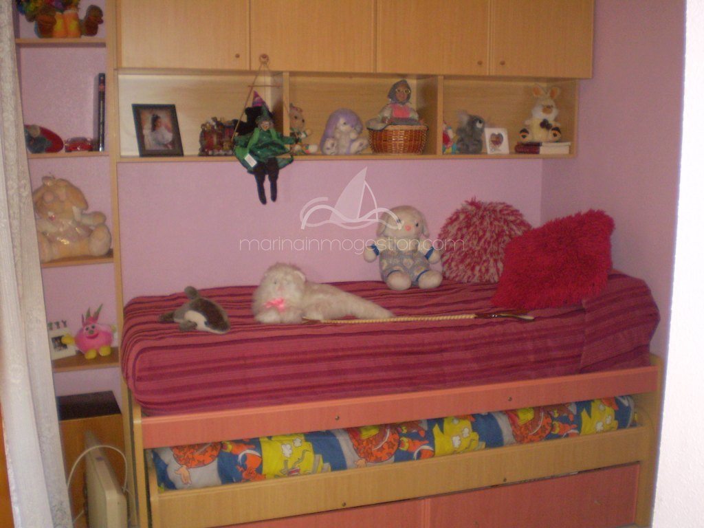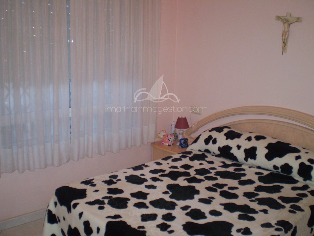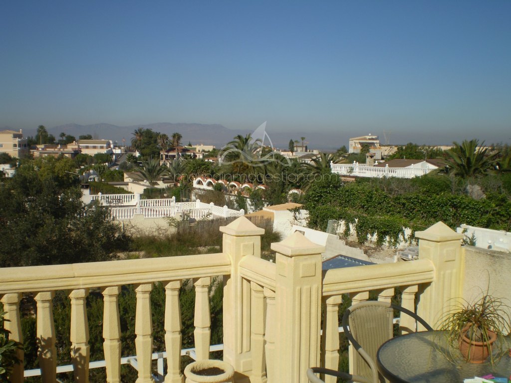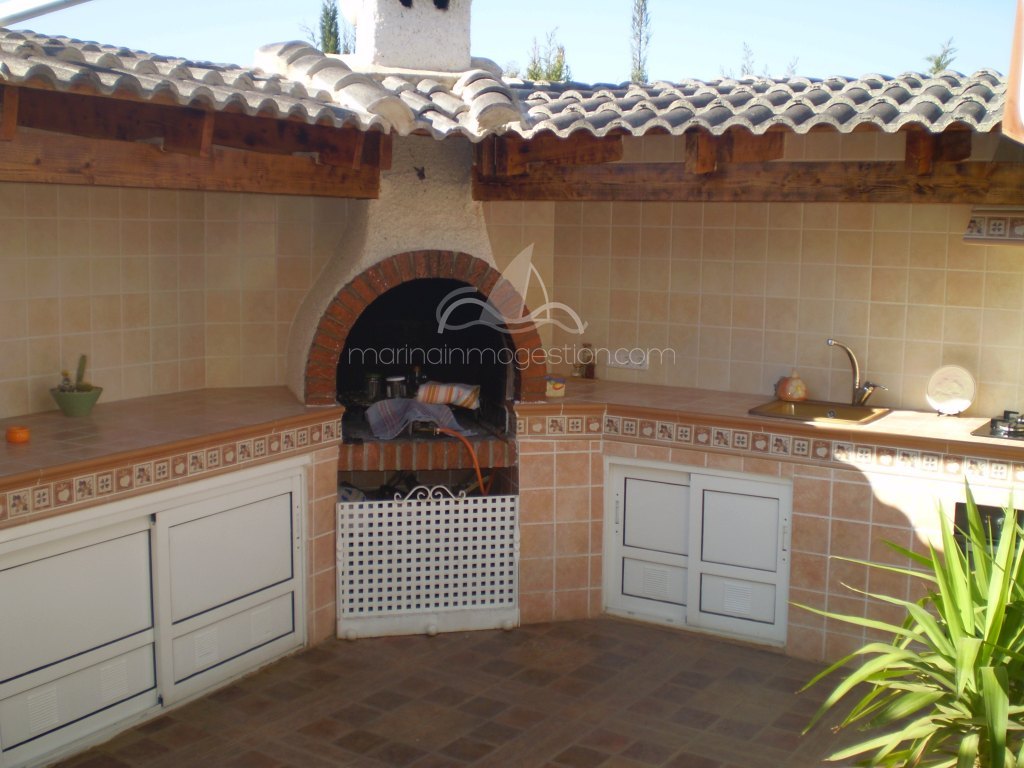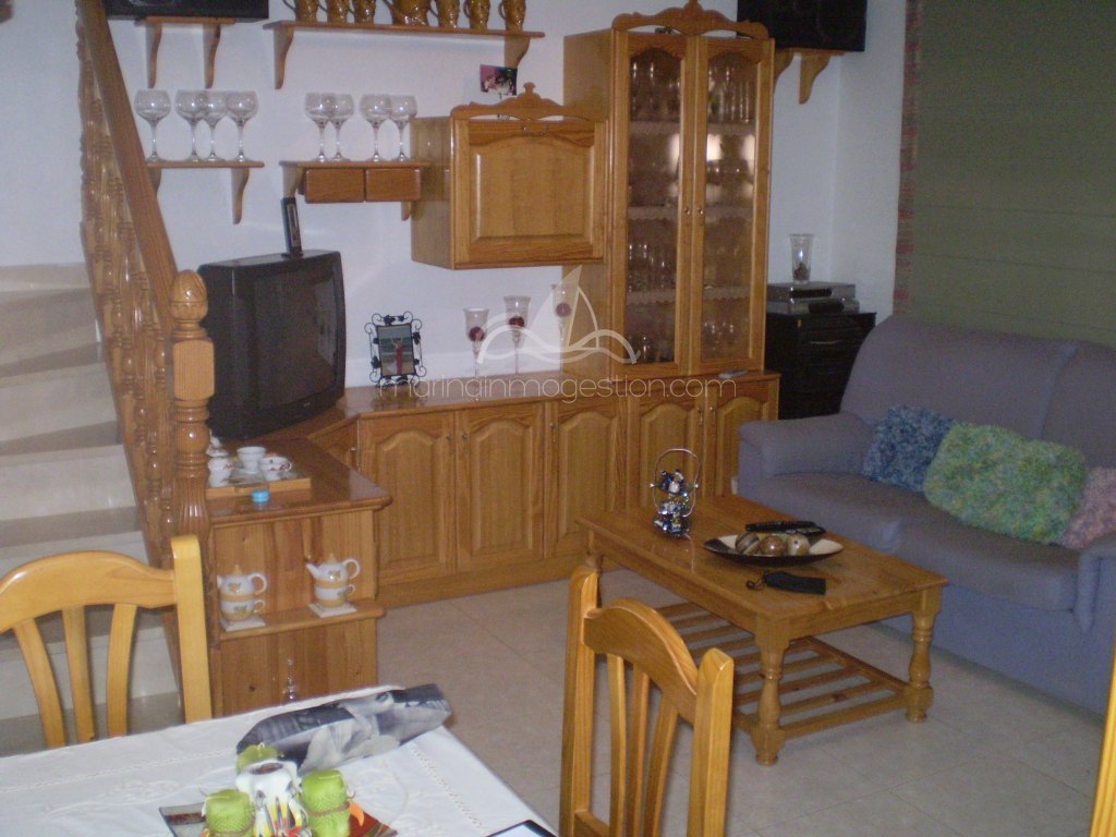 Fantástico chalet tipo quad en la urb. La marina. Está distribuido en 2 plantas y consta de 3 dormitorios y 2 baños, un espacioso salón , cocina independiente y trastero. En la parte delantera de la casa hay una amplia terraza con una bonita barbacoa. Tiene zona privada de aparcamiento y una bonita piscina comunitaria. Hay aire acondicionado para frío y calor. Desde la terraza tiene unas bonitas vistas.