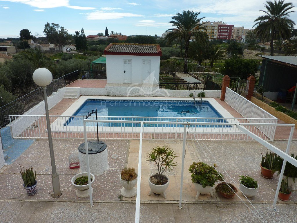 Preciosa villa independiente de 190 m/2 situada en el pueblo la marina, a pocos metros de la playa el pinet. Cuenta con 5 dormitorios, 2 baños, cocina independiente,garaje, un jardín con piscina privada y una magnífica parcela de 3500 m/2, con árboles frutales. Zona tranquila rodeada de naturaleza, cerca de restaurantes, supermercados, centro medico,etc.