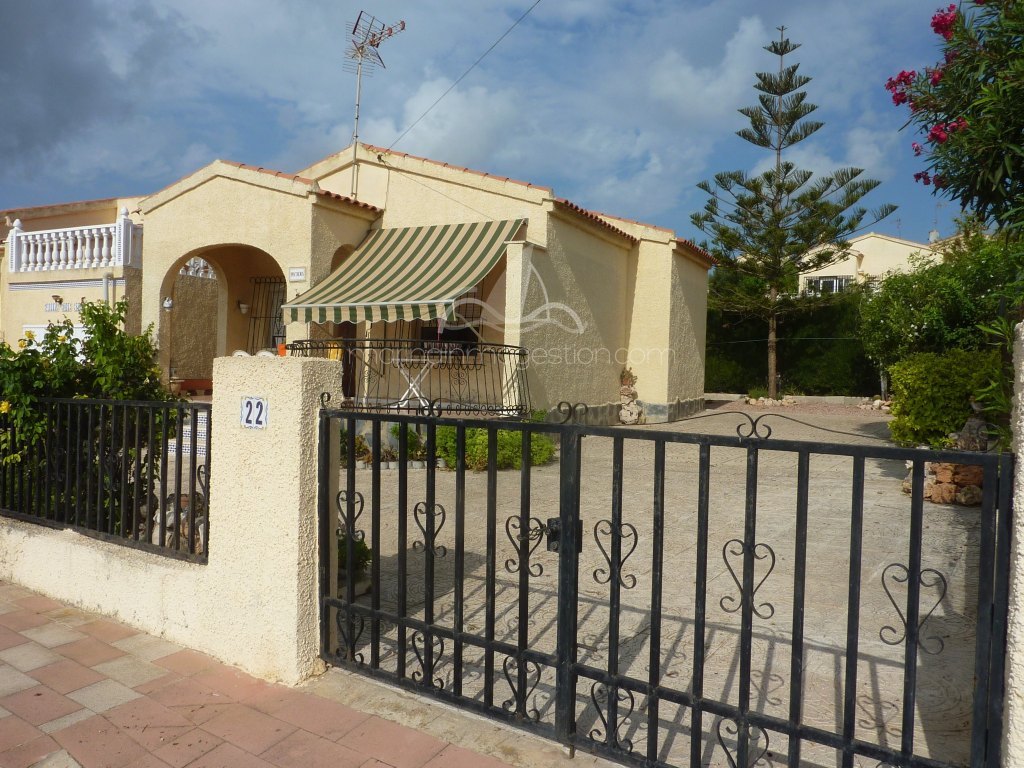 Bonito chalet independiente en muy buena situación y vistas, al lado del mercadillo semanal y de todos los servicios. Consta de dos dormitorios, un baño con bañera, salón-comedor y cocina americana original. Bonito jardín alrededor de la casa con espacio para piscina y dejar el coche. Bonita y amplia terraza con toldo también. Precio muy interesante.