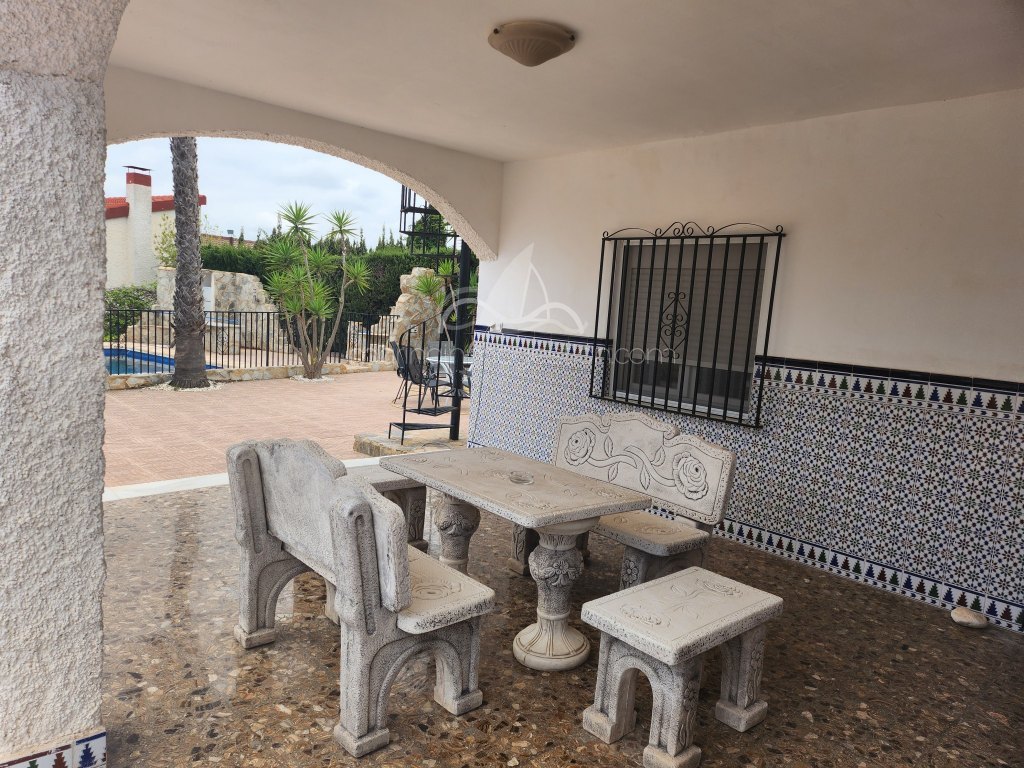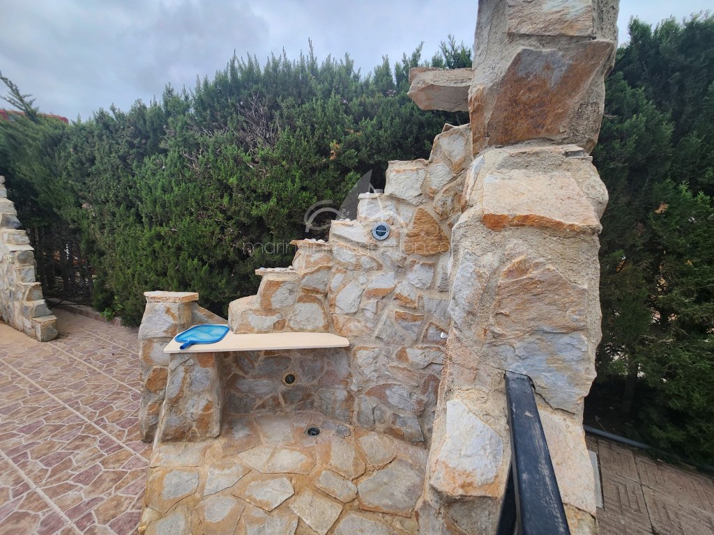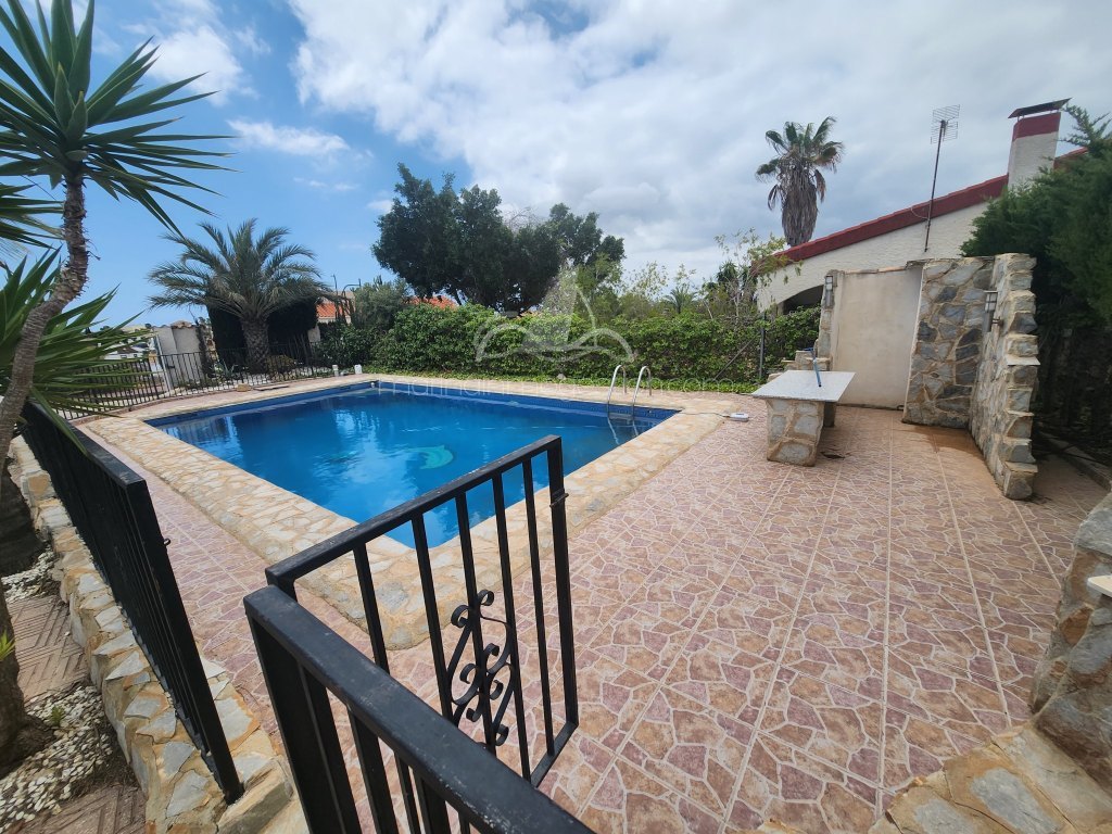 A la venta este chalet en urb la escuera. A 10 minutos de todos los servicios y playas de la marina. Parcela de 800 m/2 con piscina privada. Rientación sur.