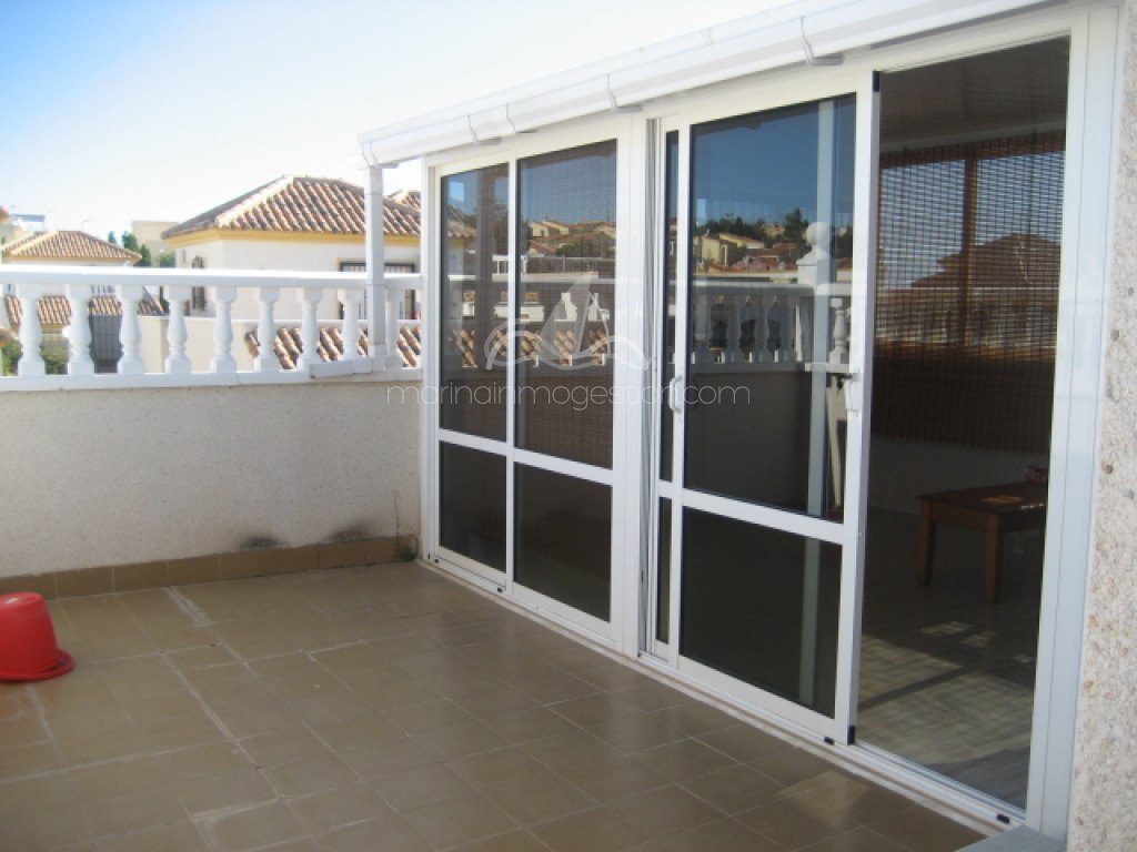 Chalet-duplex en residencial cerado con piscina comunitaria. Zona tranquila pero cerca de todos los servicios y zonas comerciales de la zona. El tercer dormitorio con baño es independiente en la parte alta de la casa. Con solarium. Orientacion este.