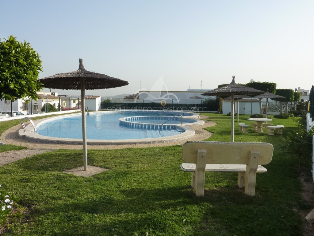 Bonito chalet-duplex en residencia con piscina comunitaria en urb marina, al lado de todos los servicios y con una orientacion que dispone de sol todo el día. Ademas de la vivienda dispone de un apartamento independiente con 1 dormitorio, salon-cocina americana, baño y su propia terraza con barbacoa. Con muebles y electrodomesticos.